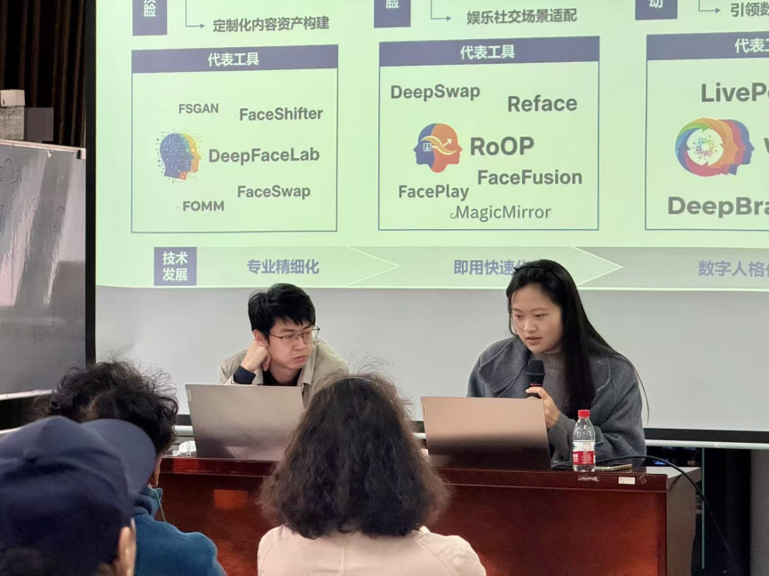 活动中,实验室的宣讲人带来了前沿AI诈骗技术的动态演示。从虚拟人脸合成到声音模仿,这些曾只在技术领域听闻的“AI魔法”,通过直观的案例展示,让老同志们真切感受到新型电诈的欺骗性。
