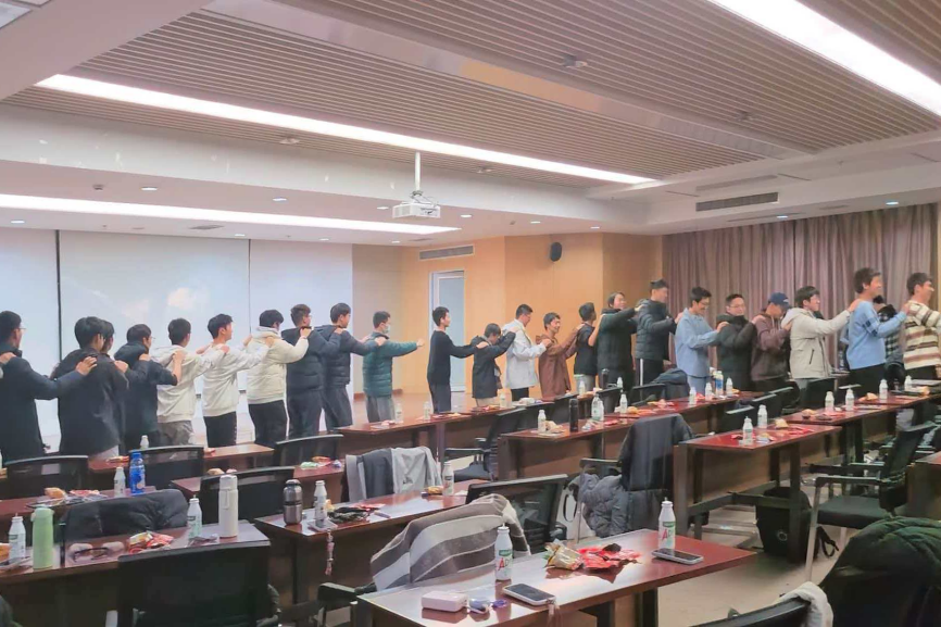 晚会期间穿插的三轮趣味互动游戏,成为凝聚欢乐的重要纽带。“瞎掰王”环节中,同学们机智应变、妙语连珠,凭借天马行空的想象力展现了网安学子的灵动思维;“动作接龙”邀请全场观众共同参与,大家积极响应、默契配合,现场洋溢着欢声笑语;最后的“兔子舞”环节,全体师生手拉手、肩并肩,跟着节奏整齐律动,将现场化为一片欢乐的海洋,充分展现了同学们活泼开朗、团结协作的良好精神风貌。晚会尾声,班主任张见见老师发表温馨致辞,既肯定了班级成立以来的各项成绩与同学们的成长进步,也对新一年的学习生活、班级建设寄予殷切期望,言语间满含关怀与期许,让在场学子倍感温暖与鼓舞。随后,全体师生共同唱响《难忘今宵》,悠扬的旋律回荡在现场,为本次元旦晚会画上了圆满的句号。