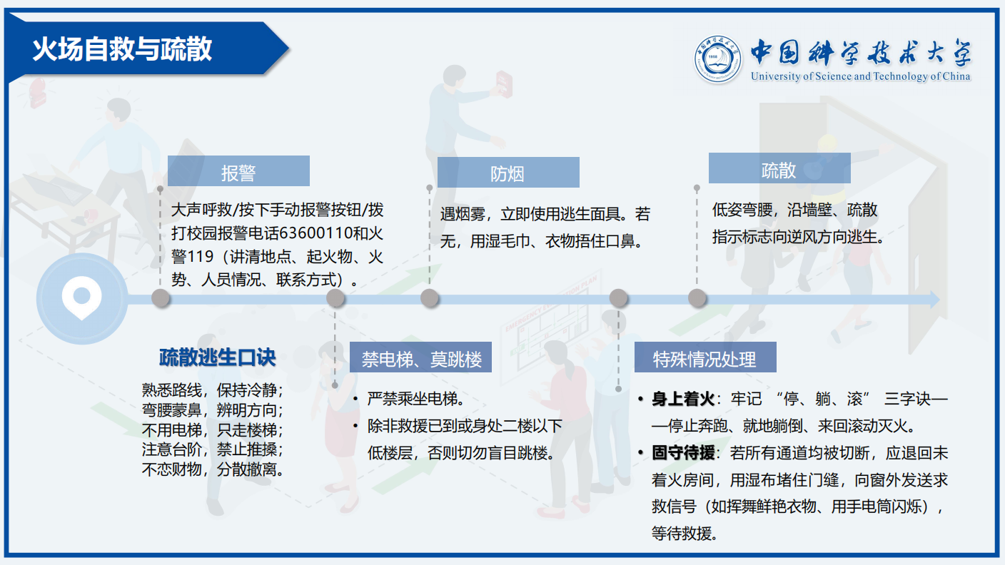 本次班会聚焦校园消防安全实际,重点讲解了校园火患排查、火场自救疏散、消防器材使用三大核心内容。朱正涛逐一梳理宿舍、校园公共场所、实验室等重点区域的常见消防隐患,明确各类场景下的安全行为规范;细致讲解火场正确报警流程、防烟逃生实用技巧,带领同学们熟记校园疏散逃生口诀,着重强调火场逃生中严禁乘坐电梯、切勿盲目跳楼等重要禁忌;现场演示灭火器、逃生面具、室内消火栓等常见消防器材的规范操作方法,并同步公布校园报警电话、安全教育体验馆预约方式等实用安全信息,让同学们学有所获、学以致用。