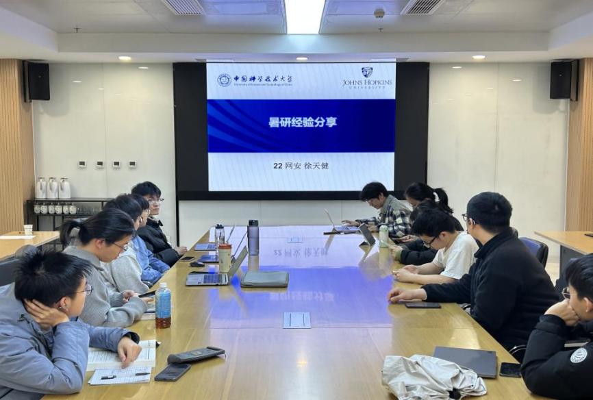 3月18日下午,中国科学技术大学网络空间安全学院2024级本科1班暑研经验分享会在中区多媒体艺术教学中心三楼会议室顺利举行。本次分享会特邀学院2022、2023级本科优秀学生代表徐天健、张子豪、付佳峻、刘雨田担任分享嘉宾,四位学长结合自身暑研经历传经送宝,现场为学弟学妹答疑解惑,助力同学们明晰新学期发展方向,科学规划科研成长路径。